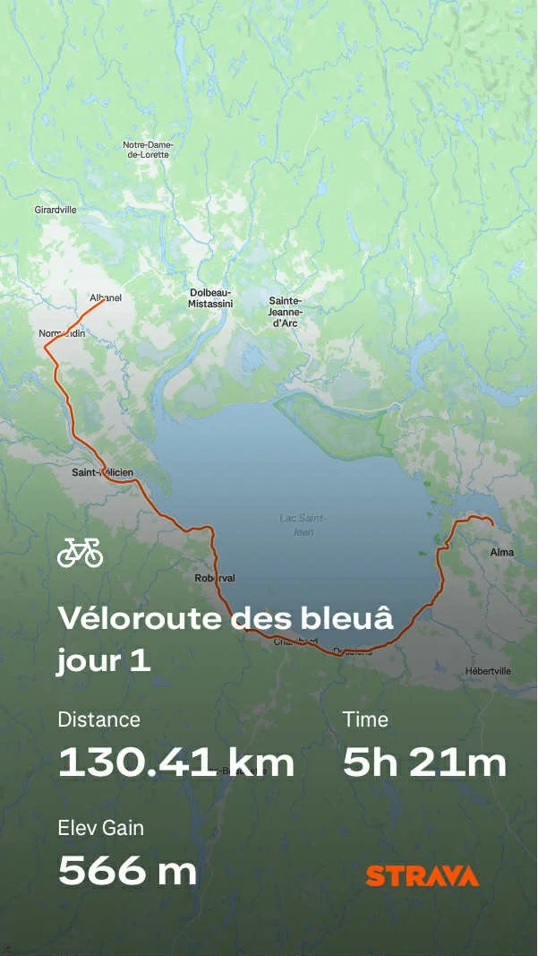 Jour 1: Camping Centre de Villégiature Dam en Terre à Alma jusqu’au camping municipal d’Albanel - 130km, +566m
